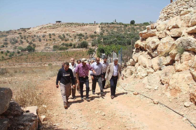 واستهل المحافظ والوفد المرافق له جولته في منطقة وادي ناصر الواقعة بين بلدتي المدور وعزبة سلمان، اطلع خلالها على مشاريع الاستصلاح التي تنفذ في المنطقة، استمع خلالها إلى شرح مفصل من المزارعين حول الواقع المعاش في هذه المنطقة في ظل سياسة الفصل العنصري والاستيطان التي تمارس بحقهم.
