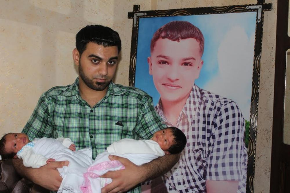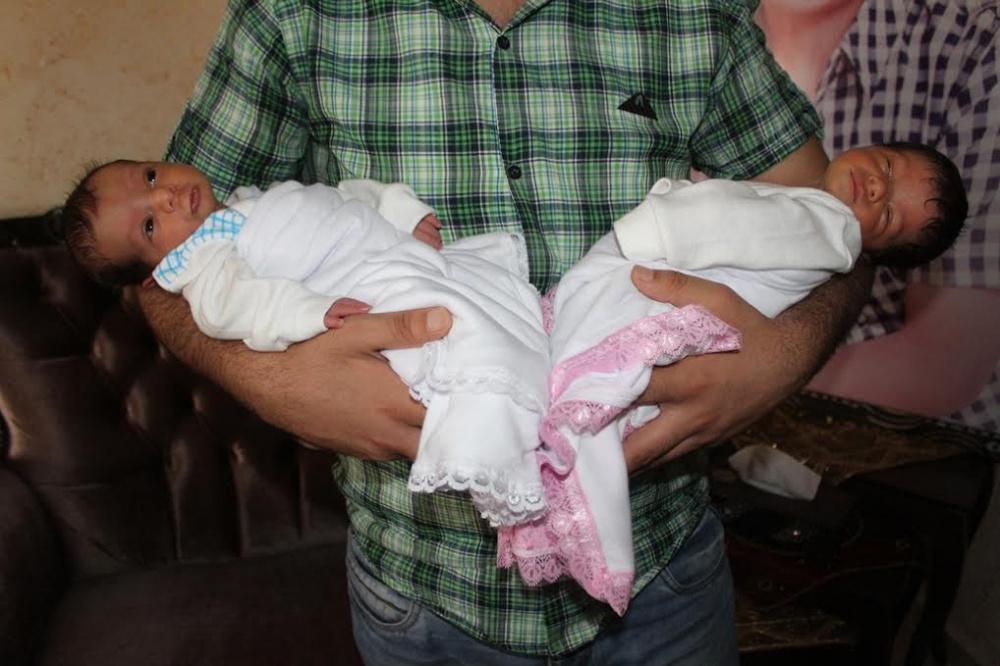 وأضافت والدة أحمد وهي تحمل التوأمين: "فور نجاح عملية زوجته في مستشفى القدس بغزة أبلغت ابني الاسير أحمد في سجن ( ريمون ) عبر اتصال هاتفي، وبناء على رغبة ابنه البكر طارق الذي توفي قبل عامين أسمينا اسم معتز للذكر وسوار للأنثى".