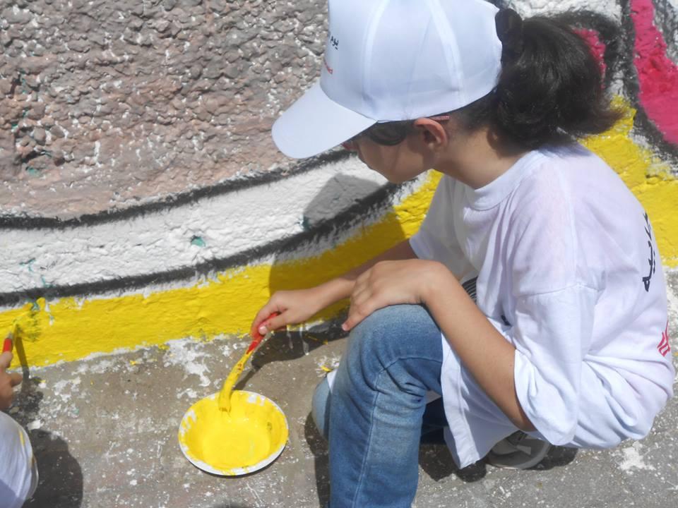 بالصور: المبادرات الشبابية ترسم جدارية "حريتي كرامتي" في الخليل