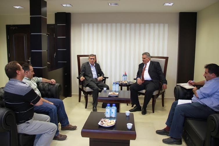 استقبل رئيس سلطة المياه م. مازن غنيم في مكتبه اليوم محافظ اريحا والاغوار ماجد الفتياني ورئيس البلدية محمد جلايطة بحضور كل من د. ايهاب البرغوثي وم. ديب عبد الغفور وم. عادل ياسين من سلطة المياه وذلك لبحث اوضاع المياه والصرف الصحي في المحافظة والاحتياجات الجديدة التي تتطلبها الجوانب التنموية والتطويرية فيها.