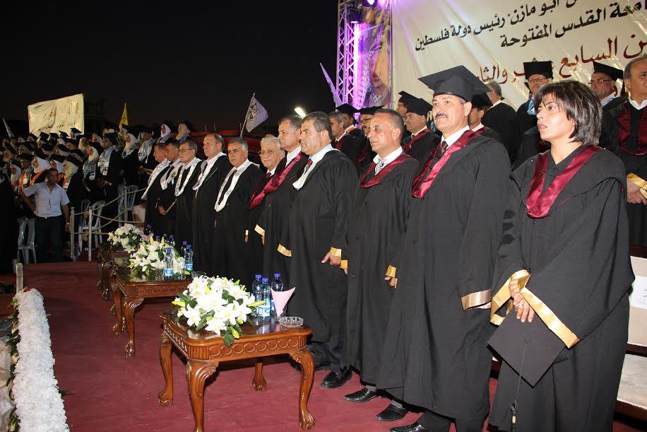 من جانبه، قال معالي وزير شؤون القدس عدنان الحسيني، في كلمته في الاحتفال، إن احتفالات جامعة القدس المفتوحة بتخريج هذه الكوكبة من الخريجين تعطينا الأمل بأن القدس بخير، وهذه الجامعة باسمها الذي يحمل اسم القدس يؤكد أن لها دوراً حقيقياً يعتز به كل مقدسي، فهي حقاً رائدة التعليم في محافظة القدس، وإن معظم خريجي جامعة القدس المفتوحة من الموظفين والعاملين هم ممن حسن أداؤهم وأبدعوا في خدمة وطنهم، ولهذه الجامعة أيضاً فضل كبير على هؤلاء العاملين الذين وجدوا طريقهم بتلقيهم العلم في مؤسسة عظيمة كجامعة القدس المفتوحة.