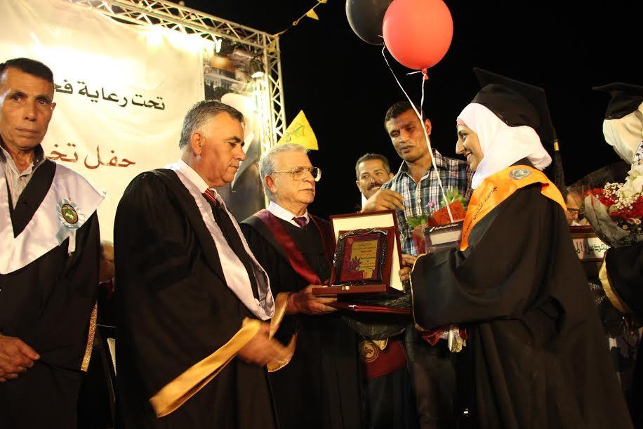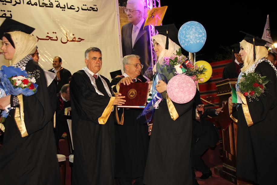 وأوصى الخريجين بالعمل والالتزام وبالأخلاق وبالسعي من أجل الرقي بمجتمعهم، وأن يكونوا سفراء لجامعتهم ومجتمعهم الذي يعاني من الاحتلال، مشيراً إلى أن العلم سيكون أساساً لإنهاء الاحتلال.