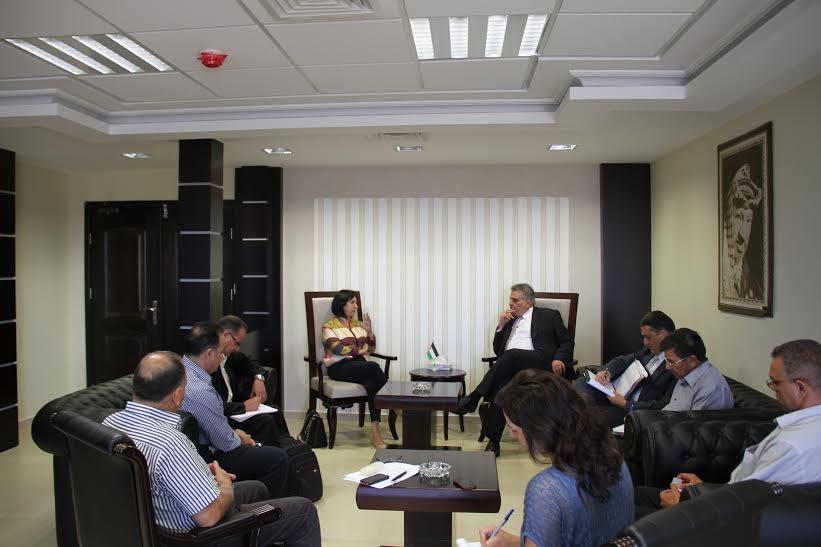 بحث رئيس سلطة المياه م. مازن غنيم في مكتبه مع رئيس بلدية بيت لحم فيرا بابون ومدير سلطة المياه اكرم نصار والطاقم المرافق احتياجات محافظة بيت لحم فيما يتعلق بمشاريع المياه.