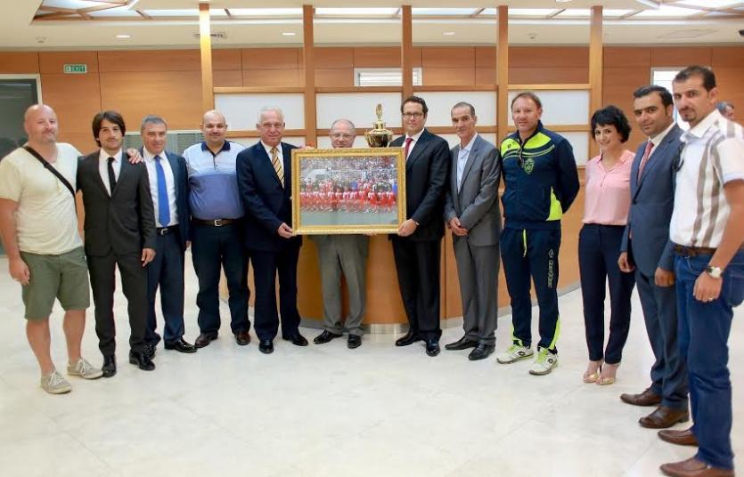 وعقد بنك فلسطين هذا اليوم الأربعاء الموافق 26/08/2015 اجتماعاً مع وفد من نادي أهلي الخليل، في مقر المركز الرئيسي للإدارة العامة لبنك فلسطين في مدينة رام الله. وضم الاجتماع كلاً من السيد هاشم الشوا، رئيس مجلس الإدارة والمدير العام لبنك فلسطين، ونائبه السيد رشدي الغلاييني، والسيد محمد نافذ الحرباوي، الرئيس الفخري لنادي أهلي الخليل، وكفاح الشريف رئيس النادي، وعدد من أعضاء مجلس إدارة النادي، وستيفانو كوسين مدرب الفريق، وعدد من اللاعبين والمسؤولين من الجانبين.