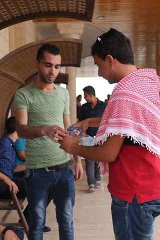 وزعت مجموعة من طلبة القطب الديمقراطي، اليوم الخميس، في جامعة بولتكنيك فلسطين بالخليل، الماء الملح تضامنا مع الأسرى المضربين عن الطعام.