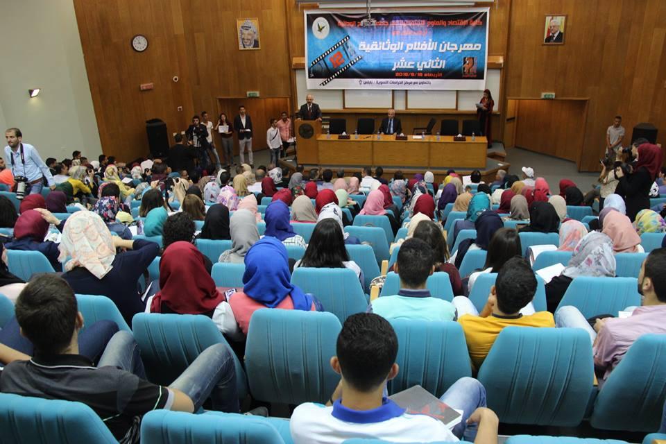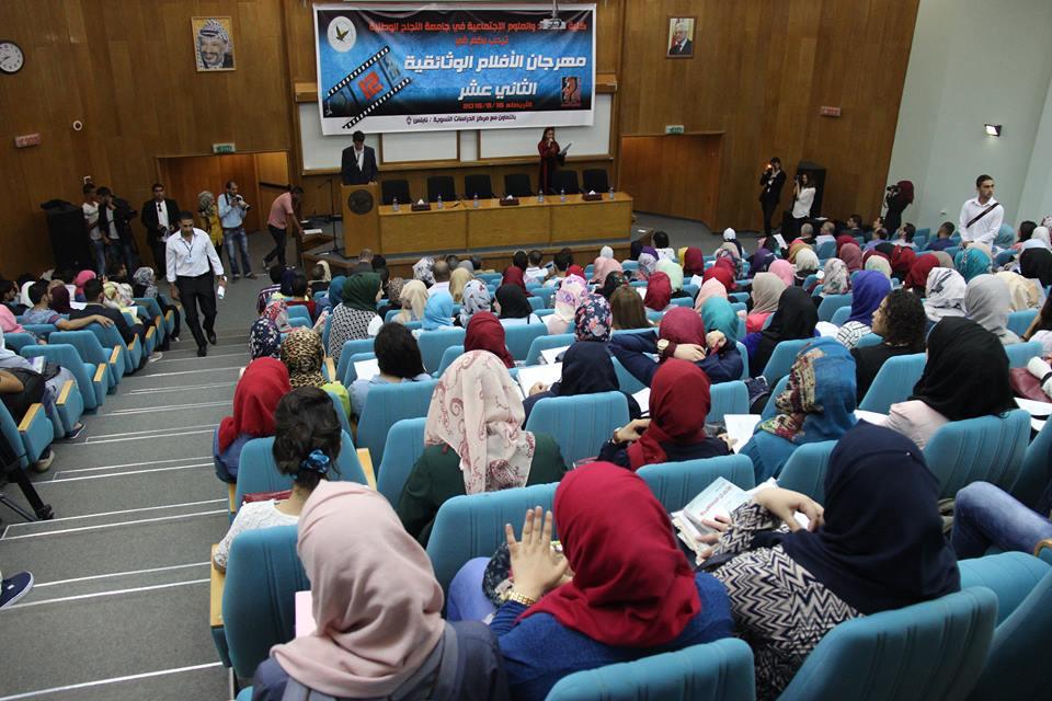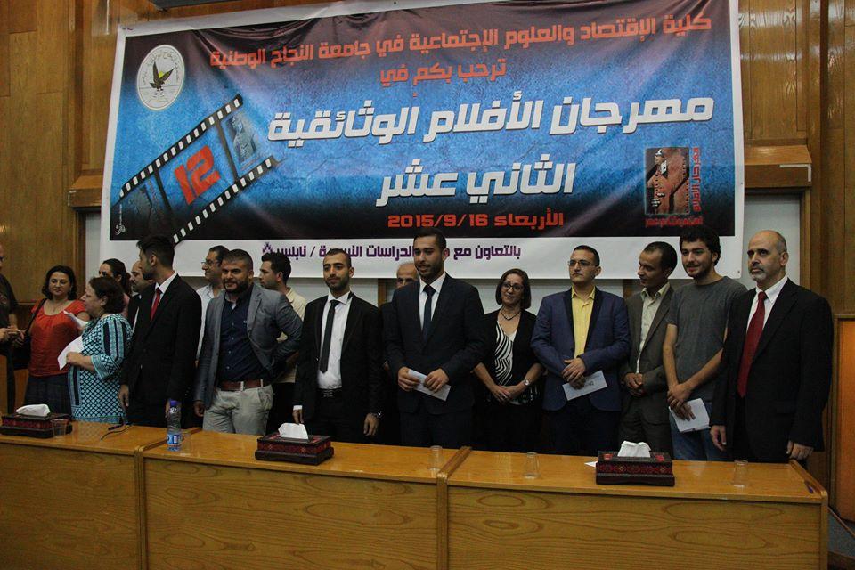 نظمت كلية الاقتصاد والعلوم الاجتماعية في جامعة النجاح الوطنية مهرجان الافلام الوثائقية الثاني عشر يوم أمس الأربعاء، في ظل مشاركة واسعة من مختلف طلبة الجامعة ومهتمين آخرين. وعُرض خلال المهرجان اثني عشرة فيلماً وثائقياً من إنتاج طلبة الإعلام في جامعة النجاح الوطنية، عالجت قضايا مختلفة مرتبطة بحقوق الانسان والمرأة.