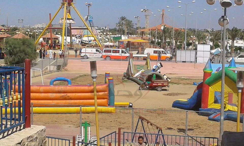 10 اصابات نتيجة سقوط أرجوحة كبيرة في منتج النور بغزة