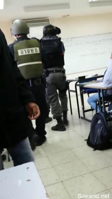 ففي اثناء الحصة الاولى، اقتحمت مجموعة من جنود شرطة الاحتلال الصفوف الدراسية، وأخرجت المعلم وسلمت المدير ورقة استدعاء للتحقيق.