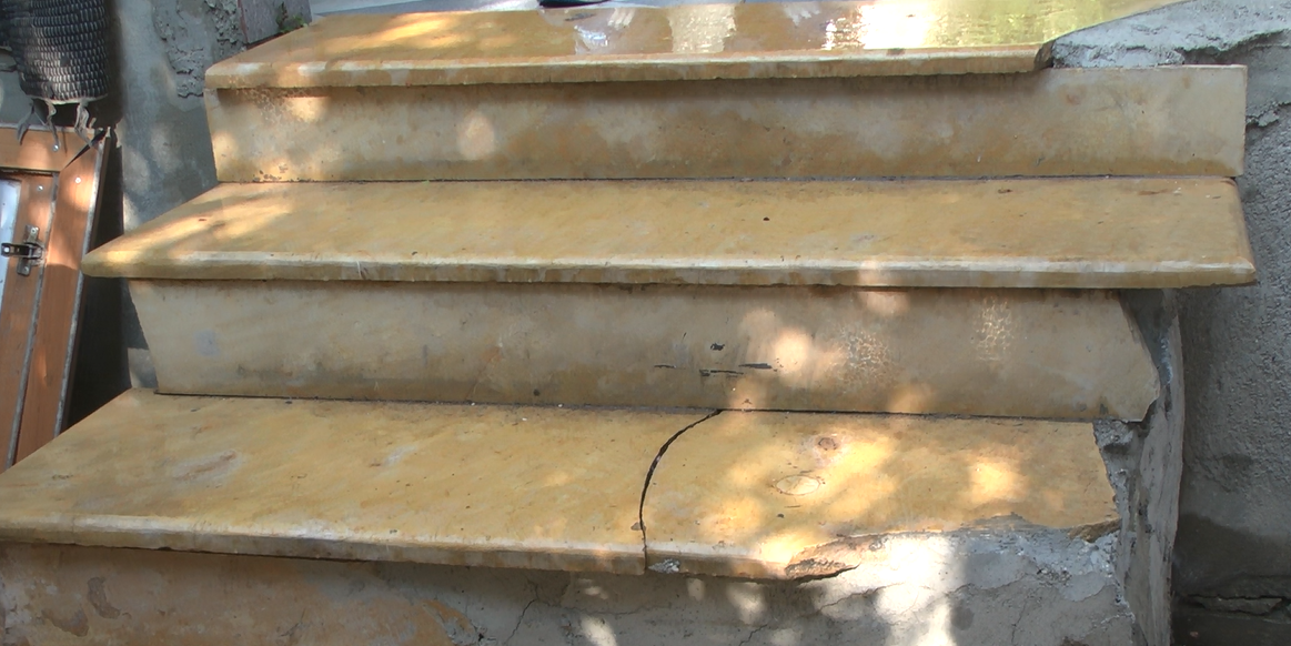 الحمام في منزل االحاجة مريم مدمر كليا، والتشققات واضحة في كل المنزل، والسور الفاصل بينها وبين الجيران على مشارف السقوط في أي لحظة من شدة التصدع، وأسفل الدرج الخارجي، الأرض "هابطة" بشكل كبير.