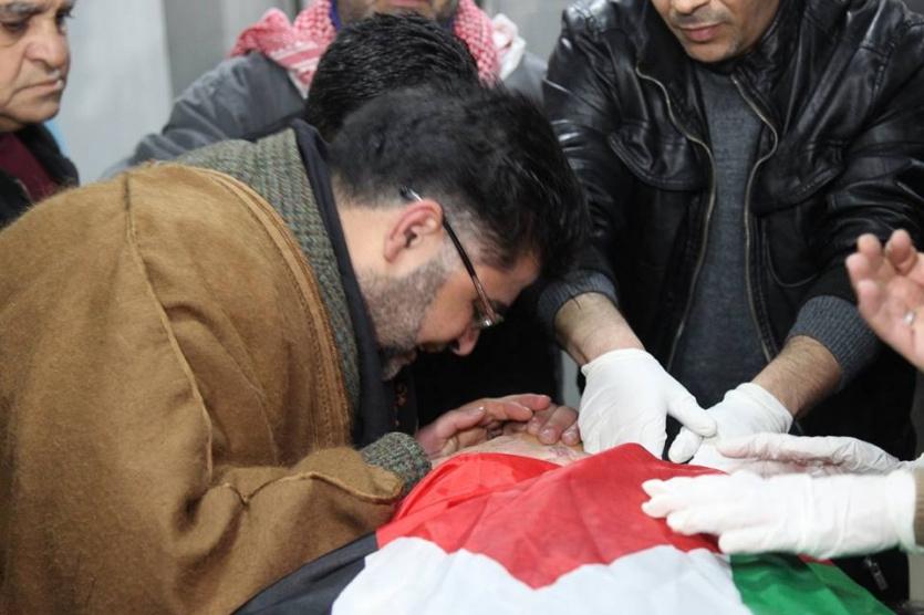 ذوو الشهيدة أشرقت قطناني يتسلمون جثمانها