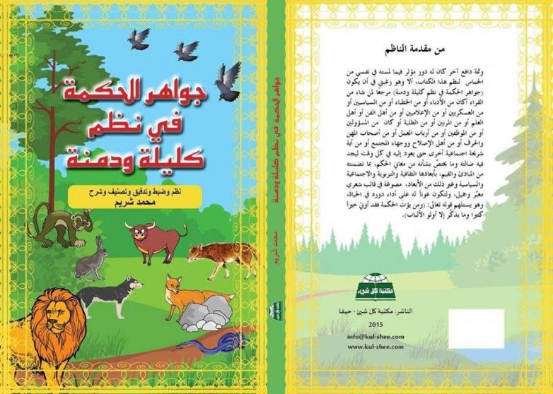 فاجأ الشاعر محمد شريم الجمهور الثقافي الفلسطيني والعربي مع بداية عام 2016 بإصداره كتابه الجديد وهو بعنوان (جواهر الحكمة في نظم كليلة ودمنة) والذي صدر عن (مكتبة كلّ شيء ) في حيفا ، ويتكون الكتاب من 322 صفحة من القطع الكبير . ويعتبر صدور هذا الكتاب للشاعر محمد شريم الذي يسكن محافظة بيت لحم تتويجاً لجهدالشاعر في نظم كتاب ( كليلة ودمنة ) وتصنيف ما فيه من الحكم الشعرية والذي استغرق ( 11) عاماً .وكتاب "كليلة ودمنة " كما هو معروف للفيلسوف الهندي بيدبا، ونقله الطبيب الفارسي برزويه إلى الفارسيه ومنها إلى العربيه على يد عبد الله بن المقفع في العصر العباسي.