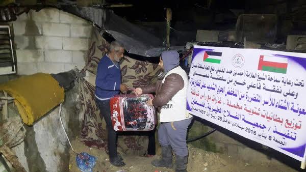 تواصل جمعية الفلاح الخيرية في فلسطين إغاثة المتضررين من المنخفض الجوي في محافظات قطاع غزة ضمن معونة الشتاء للأسر المتضررة من المنخفض الجوي الشديد على قطاع غزة والذي يأتي بدعم من أهل الخير في سلطنة عمان وبرعاية كريمة من سماحة الشيخ العلامة/ أحمد بن حمد الخليلي المفتي العام لسلطنة عُمان