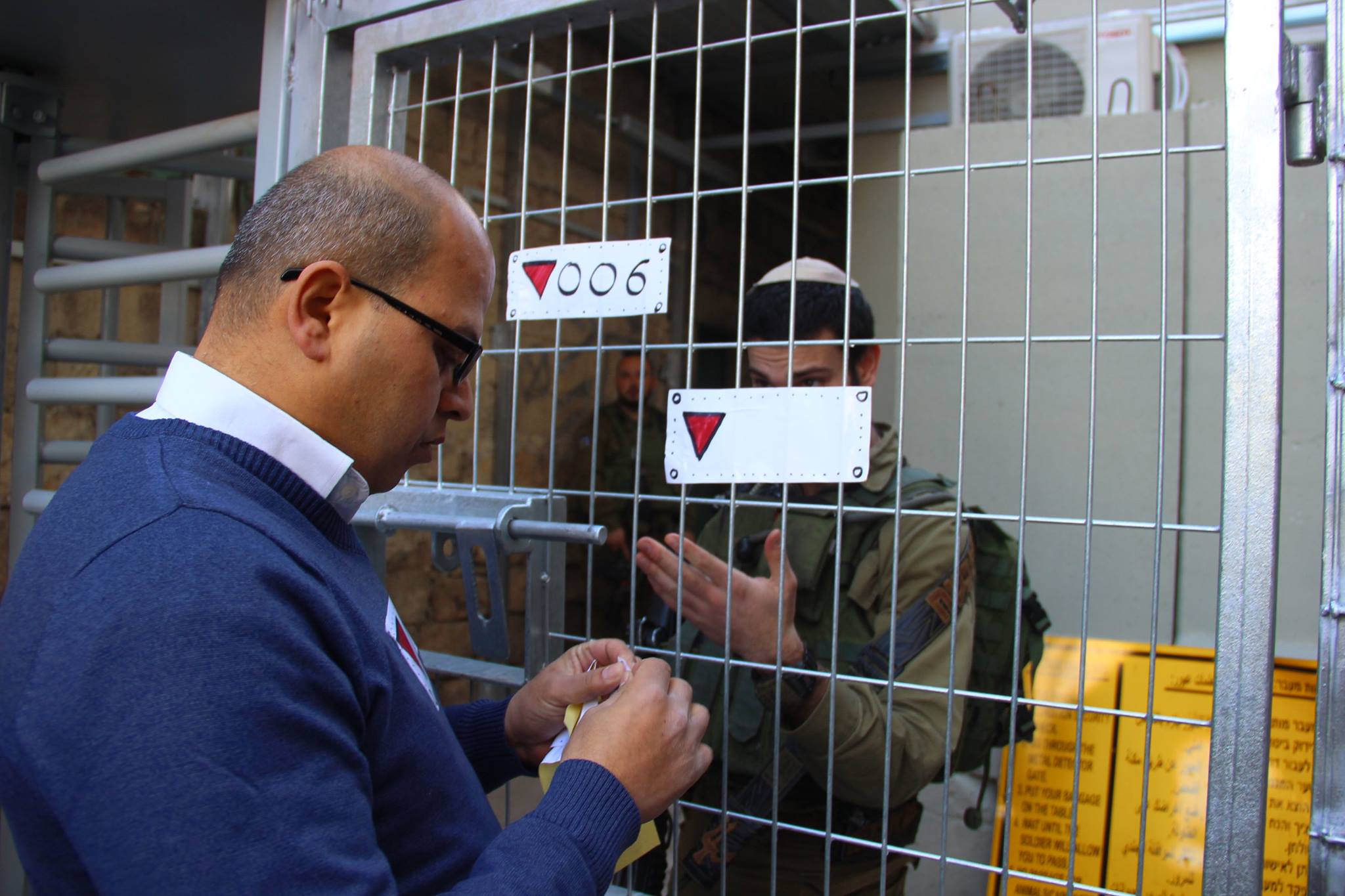 بعد سدل الستار عن حاجز شارع الشهداء وسط مدينة الخليل، الذي أعيد بناءه مؤخراً بصورة معقدة، تجعل المواطن الفلسطيني يمرّ عبر مراحل تفتيش مختلفة بين شِبَاكِ الحاجز من خلال توجيهات تسمع من مكبرات الصوت ودون أن يلتقي بأي جندي اسرائيلي، تزايدت معاناة سكان شارع الشهداء وتل الرميدة أضعافاً مضاعفة عما كانت عليه قبيل شهر تشرين أول من العام الماضي 2015.