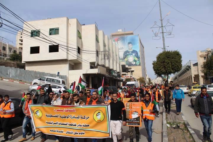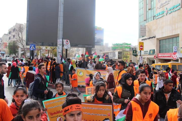 وقد انطلق المشاركون في مسيرة من أمام مسجد الحسين باتجاه دوار ابن رشد حاملين ومرددين لشعارات المقاومة والتحدي للاحتلال والتأكيد على أهمية مقاطعة المنتجات الإسرائيلية كأداة كفاحية هامة يمتلكها الجميع.