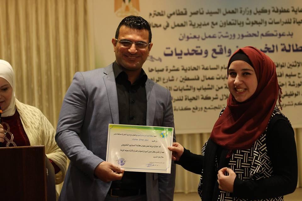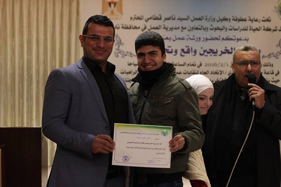 وتخلل الورشة احتفالية لتخريج كوكبة من الشباب والشابات الذين اجتازوا دورات متنوعة المحاور تم تنفيذها من خلال شركة الحياة للدراسات والبحوث.