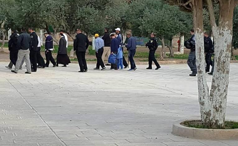 وترافق قوة معززة من شرطة الاحتلال الخاصة، المستوطنين خلال جولاتهم المشبوهة والاستفزازية في المسجد المبارك، في حين يتصدى المصلون وطلبة مجالس العلم لهذه الاقتحامات بهتافات التكبير الاحتجاجية.