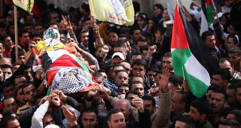 بمراسم عسكرية,, شيع المواطنون جثماني الشهيدين علي طقاطقة وعلي ثوابتة من مستشفى بيت جالا الحكومي لموراة جثمانيها الثرى في بلدة فجار جنوب بيت لحم .
