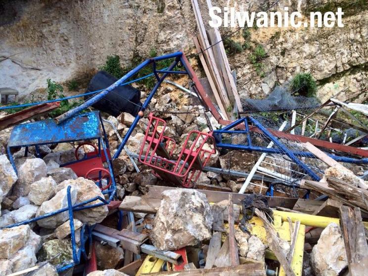 صور:قوات الاحتلال تعتدي على شابين وتهدم ملعبا وغرفة في سلوان