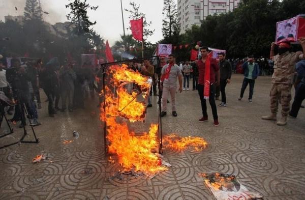 قال وزير العدل علي أبو دياك، إن حرق صور الرئيس محمود عباس في مسيرة للجبهة الشعبية في مدينة غزة، "سلوك هابط يجرمه القانون، وينتهك كافة المبادئ والأصول والقيم الوطنية والأخلاقية والتنظيمية والحزبية".