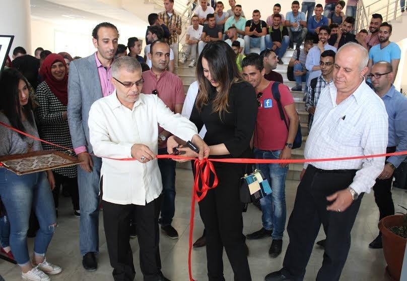 افتتح المعرض عميد كلية العلوم الإدارية والمالية الدكتور شريف أبو كرش، بحضور الفنانة عواطف رومية، واستاذ الاعلام في قسم اللغة العربية والاعلام الأستاذ سعيد أبو معلا، ومجموعة من أعضاء الهيئتين التدريسية والإدارية.