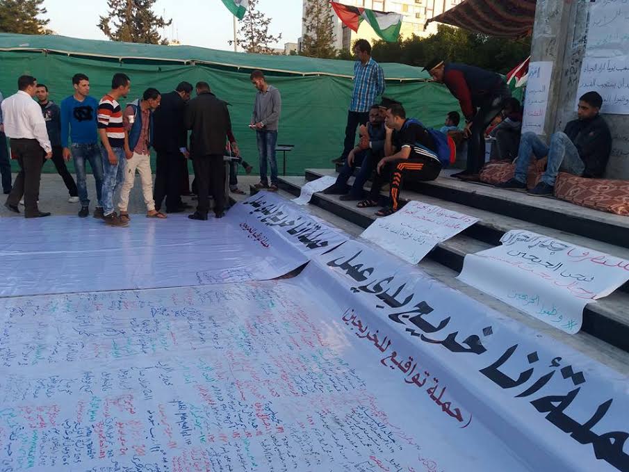 "ثورة الخريجين الجامعيين" تقرع أبواب غزة، بعدما دشنها ثلاثة شبان خرجوا من قاعات الجامعات إلى كساد البطالة، دون اهتمام المسؤولين بشباب فقد حاضره بين أنياب الأزمات ويخشى على مستقبله.