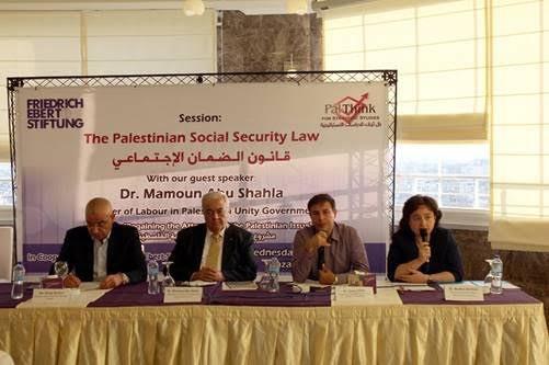 استمراراً لفلسفة بال ثينك للدراسات الاستراتيجية كمؤسسة تفاكر فلسطينية مستقلة تهتم بالشأن الفلسطيني داخلياً وخارجياً بشكل مهني مستقل دون أيدولوجية مسبقة ونظرا لأهمية موضوع قانون الضمان الاجتماعي والجدل القائم حوله في الآونة الأخيرة، نظمت بال ثينك للدراسات الاستراتيجية بالتعاون مع مؤسسة فريدريش ايبرت الألمانية ورشة عمل بعنوان “قانون الضمان الاجتماعي” وذلك ضمن مشروع "استعادة الانتباه الى القضية الفلسطينية"، بمشاركة د. مأمون أبو شهلا وزير العمل في حكومة الوفاق الوطني، و د. بيهان شينتورك مديرة مؤسسة فريدريش إيبرت الألمانية في الأراضي الفلسطينية، ود. أسامة عنتر مدير برامج المؤسسة في قطاع غزة، وبحضور مجموعة من الخبراء والنقابيين والحقوقيين وممثلين عن منظمات المجتمع المدني والمؤسسات الدولية والمحلية وبعض من الاعلاميين والاكاديميين من قطاع غزة.