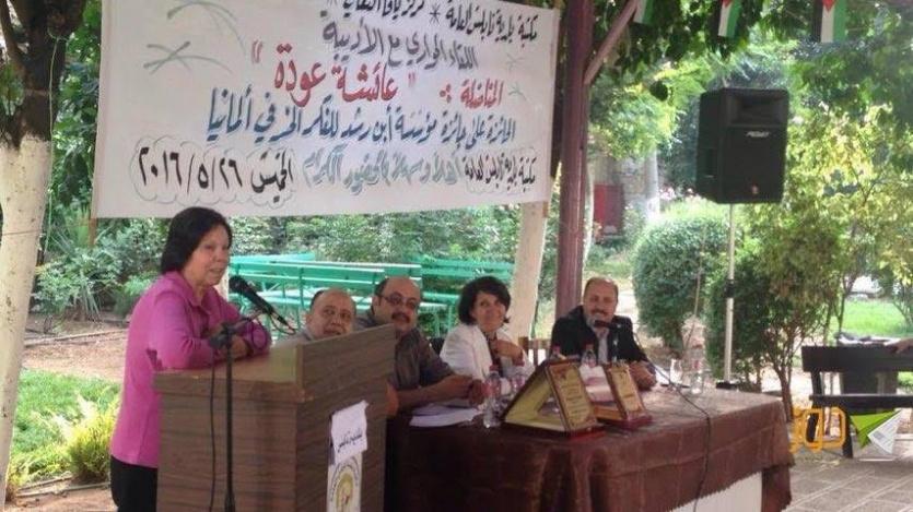 عقد أول أمس الخميس، وتحت رعاية رئيس لجنة بلدية نابلس المهندس سميح طبيلة، وبدعوة من مركز يافا الثقافي والاتحاد العام للمرأة الفلسطينية ومكتبة بلدية نابلس العامة اللقاء الحواري الأدبي مع المناضلة والكاتبة الفلسطينية عائشة عودة، التي تحدثت فيها عن أدب المقاومة وعن سيرتها الذاتية في كتابيها "أحلام الحرية" و "ثمناً للشمس" والتي سردت فيهما عن تجربتها الاعتقالية بعد ثلاثة وثلاثين عاماً من تاريخ الاعتقال وأرّخت فيها للتجربة السياسية والاجتماعية والثقافية لمجموعة من المناضلات في السجون الإسرائيلية.