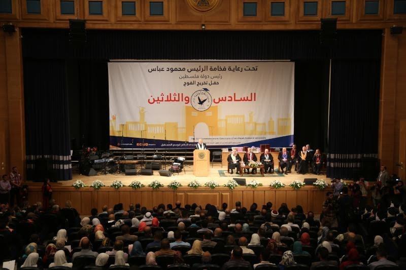تحت رعاية الرئيس محمود عباس أبو مازن، رئيس دولة فلسطين، وبحضور الدكتور علي ابو دياك ممثلاً عنه، وبحضور أعضاء مجلس أمناء الجامعة، والأستاذ الدكتور ماهر النتشة، القائم بأعمال رئيس الجامعة، ونواب الرئيس ومساعديه، وعمداء كليات الجامعة ورؤساء الأقسام والهيئات الإدارية ومدراء الدوائر في الجامعة. وبحضور رسمي وشعبي واسع اطلقت جامعة النجاح الوطنية يوم الأربعاء، إحتفالات التخرج الرسمية للفوج السادس والثلاثين من طلبتها وذلك بتخريج أوائل الطلبة من مختلف كليات الجامعة.