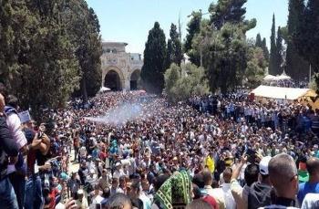وكان آلاف الفلسطينيين شرعوا منذ ساعات الليلة الماضية وفجر وصباح اليوم بالتدفق على مدينة القدس المحتلة، واختراق بوابات البلدة القديمة للوصول إلى المسجد المبارك، في جو مشمس وشديد الحرارة، ووسط اجراءات احتلالية مشددة في المدينة وبلدتها القديمة ومحيط الأقصى.