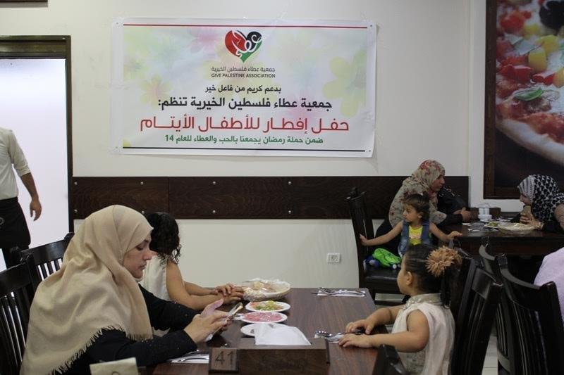 نظمت جمعية عطاء فلسطين الخيرية إفطار جماعي للأيتام المكفولين لدى الجمعية وذويهم بعدد 120 أسرة يتيم من كافة مناطق قطاع غزة، بتبرع كريم من فاعل خير ضمن حملة رمضان يجمعنا بالحب والعطاء للعام 14، والذي أقيم في المطعم التايلندي في مدينة غزة.
