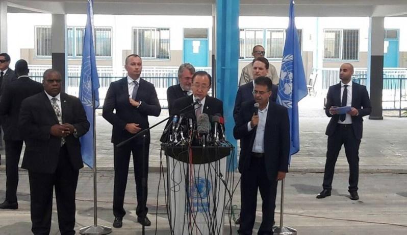 وأشار كي مون إلى أنه تم إعمار ما يقارب 90% من المدارس والمستشفيات في قطاع غزة، التي دُمرت خلال العدوان الإسرائيلي الأخير عام 2014، مبيناً أنه لا زال الكثير من البيوت المدمرة تنتظر إعادة الإعمار والكثير من المنازل تم إعمارها.