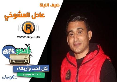 استضاف برنامج راديو شات الذي يبث على أثير رايـــة ويقدمه الزميل محمود حريبات، الفنان الغزي عادل المشوخي، صاحب الأغاني المثيرة للجدل، إلا أنه يصر على أنها تحمل طابع كوميدي.