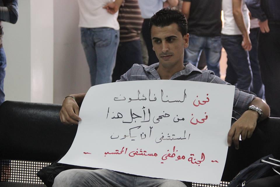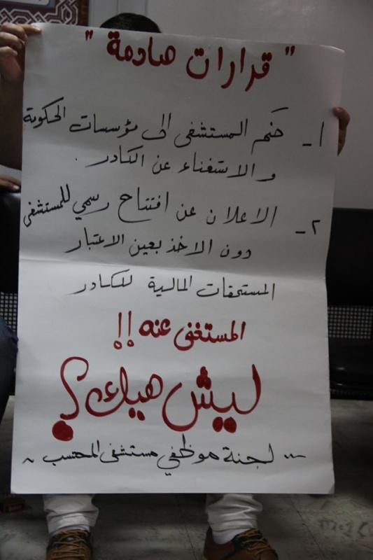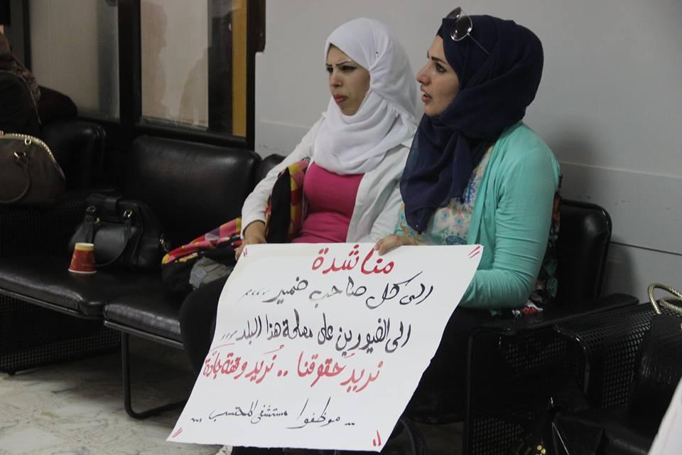وقفة احتجاجية لموظفي مستشفى المحتسب للمطالبة برواتبهم