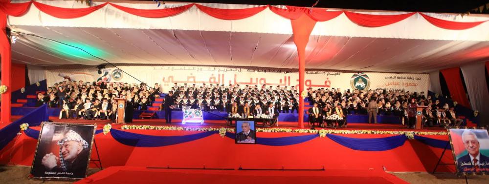 تحت رعاية فخامة الرئيس محمود عباس " أبو مازن" احتفلت جامعة القدس المفتوحة في ساعة متأخرة من مساء يوم الخميس الموافق 04/08/2016، بتخريج الفوج التاسع عشر "فوج اليوبيل الفضي " في فرع رفح ، وذلك فى مقر الجامعة بمحافظة رفح، بحضور نائب رئيس مجلس الأمناء وممثل فخامة الرئيس محمود عباس أ.د.رياض الخضري ، ونائب رئيس الجامعة لشؤون قطاع غزة أ.د.جهاد البطش ، وأعضاء مجلس الأمناء بالقطاع ، ومحافظ محافظة رفح أ.أحمد نصر ، وعدد من نواب المجلس التشريعي، ولفيف من رؤساء الجامعات والمعاهد والكليات، ومدراء الفروع بالقطاع ، وأعضاء الهيئتين الأكاديمية والإدارية، وقادة العمل الوطني والفصائل الفلسطينية، ومجموعة كبيرة من رؤساء وممثلي المؤسسات الداعمة، ومؤسسات المجتمع المدني، والبلديات وشركات القطاع الخاص ، والوجهاء والمخاتير ، وأهالي الخريجين.