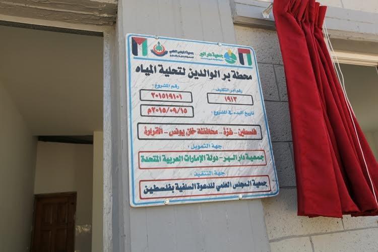 وقال الشيخ عمر فياض عضو مجلس إدارة المجلس العلمي: "إن افتتاح هذه المحطة- محطة بر الوالدين والتي تعتبر المحطة الرابعة بتبرع كريم من جمعية دار البر بدبي بدولة الإمارات العربية المتحدة جاءت لتلبية حاجة الناس من المياه العذبة في ظل اشتداد ملوحة المياه في قطاع غزة، وتأثيرها السلبي على حياة وصحة المواطنين، مشدداً على أهمية هذه المحطة بالتخفيف من معاناة المواطنين في نقل مياه الشرب من أماكن بعيدة إلى منازلهم أو شرائها بثمن رمزي".