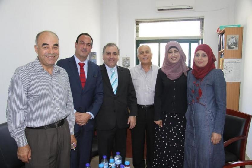 استقبل نائب رئيس الجامعة لشؤون الاتصال والتنمية أ.د.حسن دويك، و نائب رئيس الجامعة لشؤون البحث والتطوير والإبداع د.بديع السرطاوي، الإثنين، السيد منير حزبون رئيس جامعة بوليفينيانا "Universidad Bolivariana"، و"Jorge Daccarett" مستشار من أمريكا اللاتينية، بحضور أ.د.صقر درويش، وأ.رانيا المهتدي، وأ.أسماء بدر.