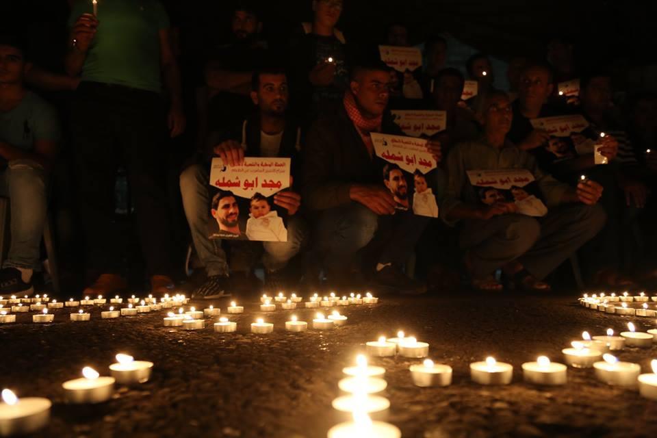 أضاء العشرات من المواطنين مساء اليوم، الشموع، تضامنا مع الأسير مجد أبو شملة، المضرب عن الطعام لليوم الـ20 على التوالي والأسرى المضربين، وذلك لدى مشاركتهم في وقفة تضامنية، نظمتها الحملة الوطنية والشعبية ، في بلدة يعبد جنوب غرب جنين .