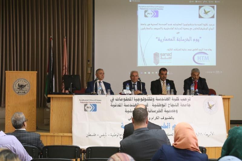عقد قسم الهندسة المدنية في كلية الهندسة وتكنولوجيا المعلومات في جامعة النجاح الوطنية بالتعاون مع جمعية الخرسانة الفلسطينية، يوماً دراسياً بعنوان (الخرسانة المعمارية) جرى عقده في قاعة مؤتمرات المعهد الكوري الفلسطيني المتميز لتكنولوجيا المعلومات.