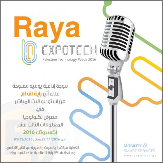 تحت رعاية سيادة الرئيس محمود عباس، تنطلق مساء غد الأحد فعاليات أسبوع فلسطين التكنولوجي إكسبوتك 2016 الثالث عشر في كلّ من الضفة الغربية وقطاع غزة، وذلك خلال حفل رسمي برعاية وحضور دولة رئيس الوزراء د. رامي الحمد الله، في فندق الموفينبك في رام الله بالتزامن مع حفل الافتتاح في فندق روتس في غزة، وستستمر فعاليات أسبوع إكسبوتك 2016 حتى يوم الخميس القادم.