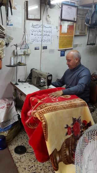 أبو يزن 50 عاما مُنجد وصاحب دكان للتنجيد في مدينة رام الله دكان يشي بالقدم والعراقة ويملأ أجواءه غبار الزمن ورائحة السنوات الكثيرة التي مرت بالمكان...واينما وجهت نظرك سترى مقصات وابر وماكنات خياطة و اوراق خُط عليها مقاسات كثيرة لاغطية صوفية ربما اوصاه بعض الزبائن على انجازها.