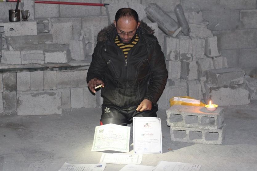 الجملة العامية الأخيرة؛ كان وقعها كحد السيف على قلبه، وفي حالة انفعال "هستيرية" انطلق طارق مسرعاً الى بيته في بلدة بيت لاهيا شمال قطاع غزة، أحضر شهاداته العلمية الذي أفنى عمره لينالها؛ ورفقة أبنائه الصغار وزوجته عاد لمكان الحادثة قرب مستشفى الشفاء وألصق الشهادات على صدره وأجساد أبنائه وخاطب المارين بحاله، "لم يجد وسيلة أفضل من تلك للشكوى"، في ظل حالة عدم اكتراث المسؤولين لعشرات آلاف من أمثاله.