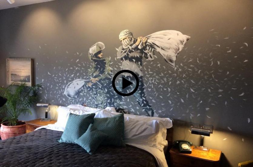 في مدينة بيت لحم افتتح امس فندقا عبارة عن بيت قديم مهجور من 3 طوابق، عمل الفنان بانكسي على تجهيزه طيلة 14 شهرا بسرية.