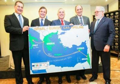 وأفادت تقارير إعلامية عبرية، الثلاثاء، بأن وزراء الطاقة في كل من إسرائيل وقبرص واليونان وإيطاليا والاتحاد الأوروبي وقّعوا، خلال قمة مشتركة جمعتهم في تل أبيب، على إعلان مشترك يقضي بدفع مشروع لمدّ أنبوب بحري لتوريد الغاز الطبيعي من إسرائيل إلى أوروبا.