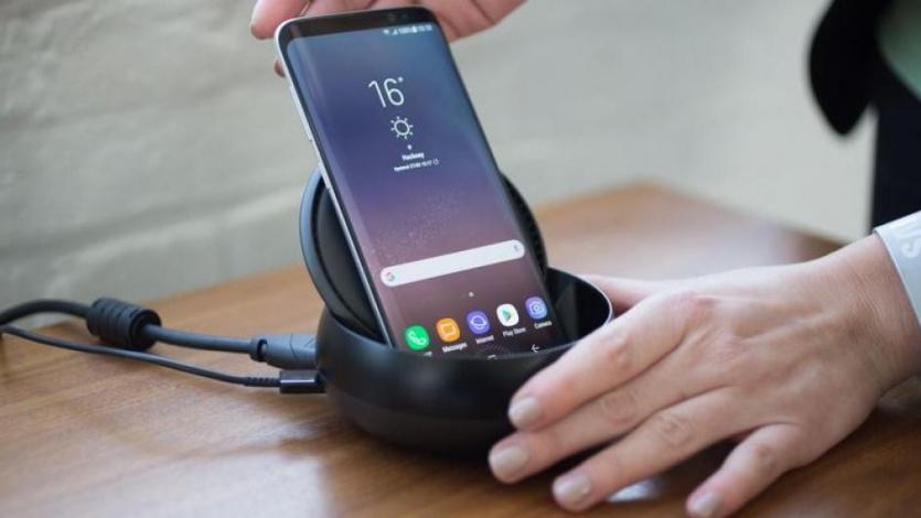 قطعة "DeX" تعمل كقاعدة يتم وضع هاتف "غالكسي إس 8" أو إس 8 بلس فيها ووصلها بالشاشة الكبيرة ولوحة مفاتيح وفأرة لتعطيك بيئة عمل تشبه الكمبيوتر الشخصي لكنه يعمل بنظام "آندرويد".
